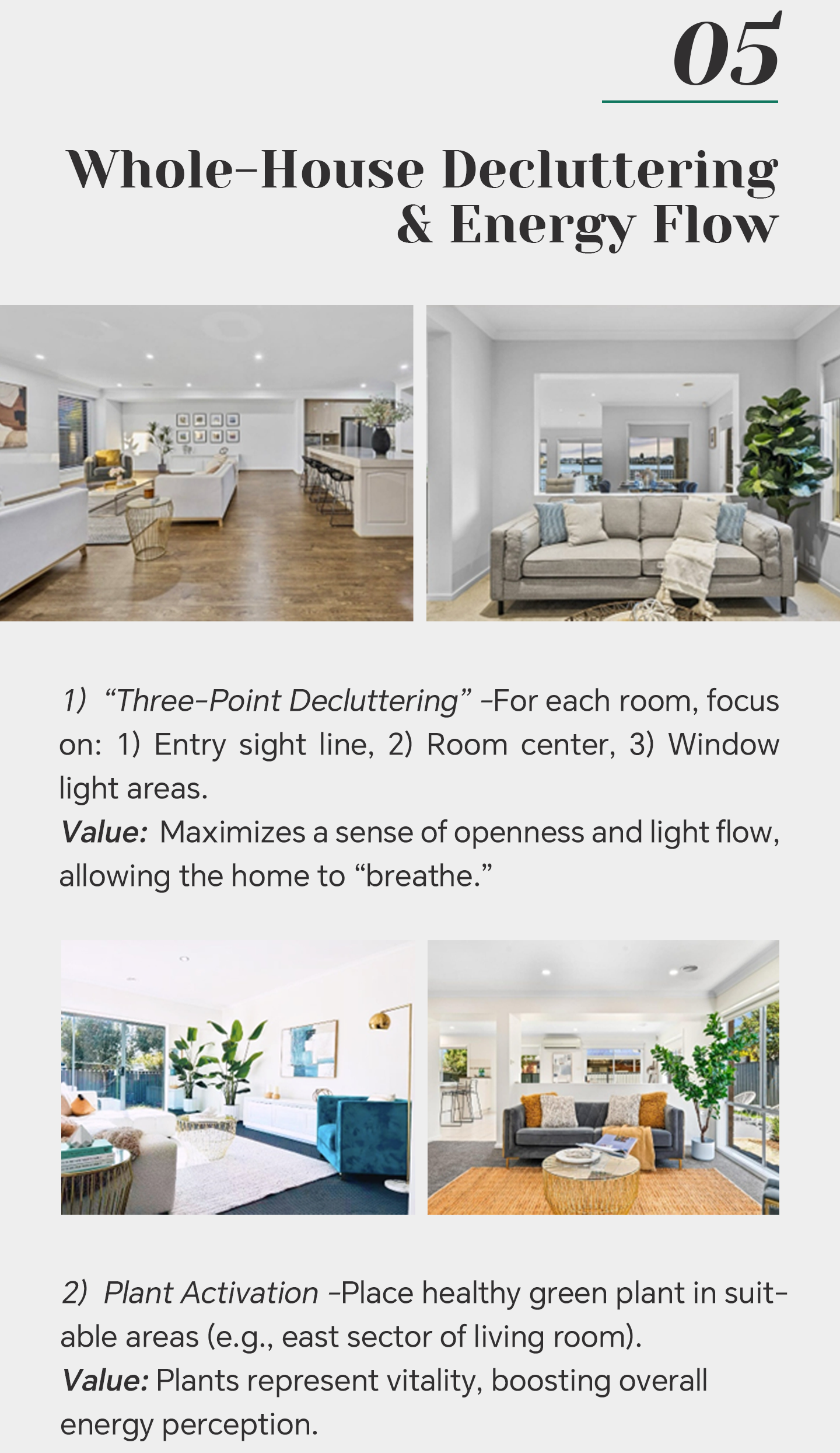 Value Proposition: Where timeless Feng Shui meets modern living. We transform spaces to resonate deeply with buyers' aspirations, turning viewings into connections and accelerating premium sales.